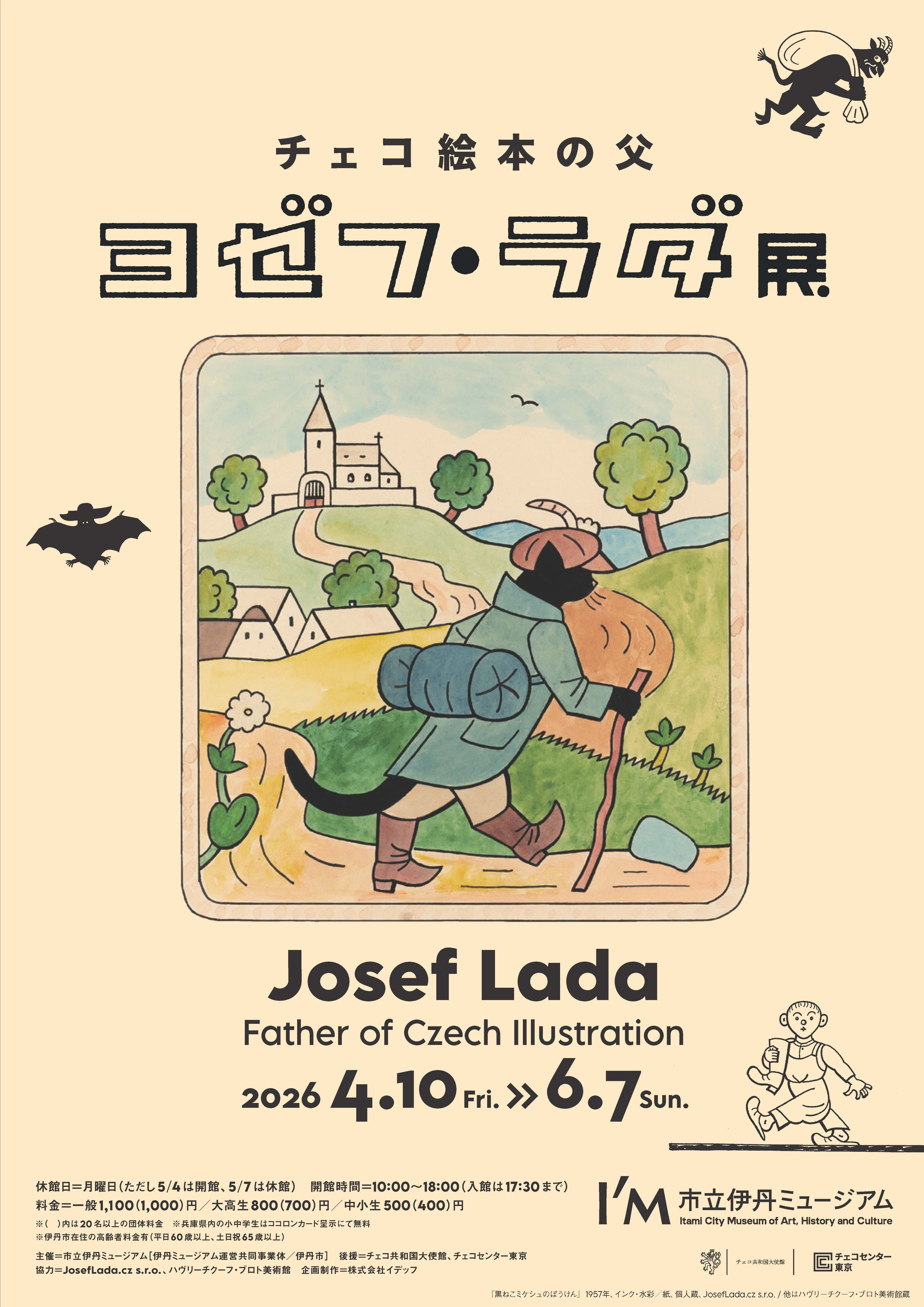 絵本大国チェコを代表する作家でありながら、これまで、まとまった個展として展示される機会のなかったラダ。本展は、2018年、ブラチスラヴァ市立美術館で開催されたヨゼフ・ラダ展に出展されたラダご遺族のコレクションをベースに、日本でも馴染みのある絵本の原画、チェコの風景や人びとの生活風景を描いた絵画作品、風刺画の仕事等を加え、日本での巡回展として再構成するものです。絵本原画やリトグラフ、デッサン、稀少な初版本など200点を超える作品により、ヨゼフ・ラダの幅広く奥深い魅力をご紹介いたします。